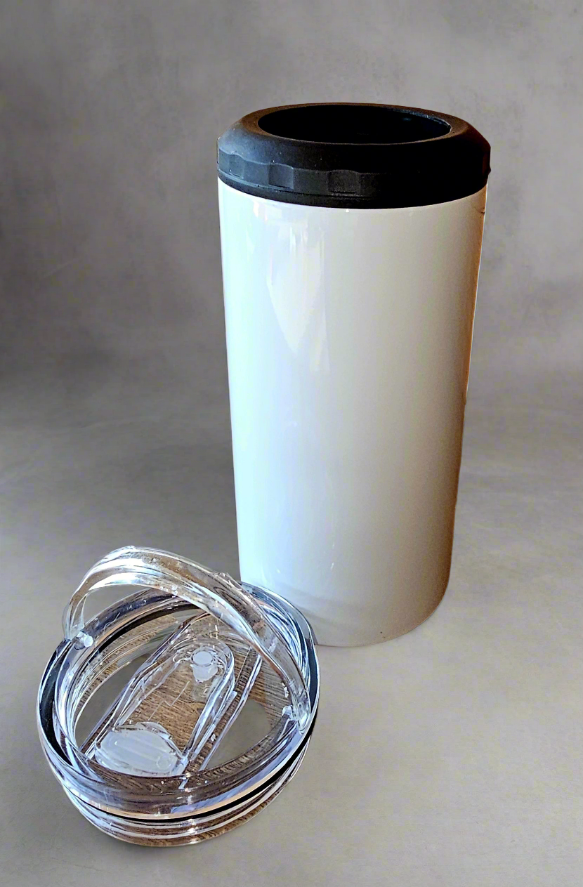 Profitez d'une boisson fraîche avec le can cooler 4 en 1 de 16oz! Parfait pour le camping, il garde les canettes fraîches grâce à sa sublimation de qualité. Emportez-le partout pour des boissons rafraîchissantes à tout moment.