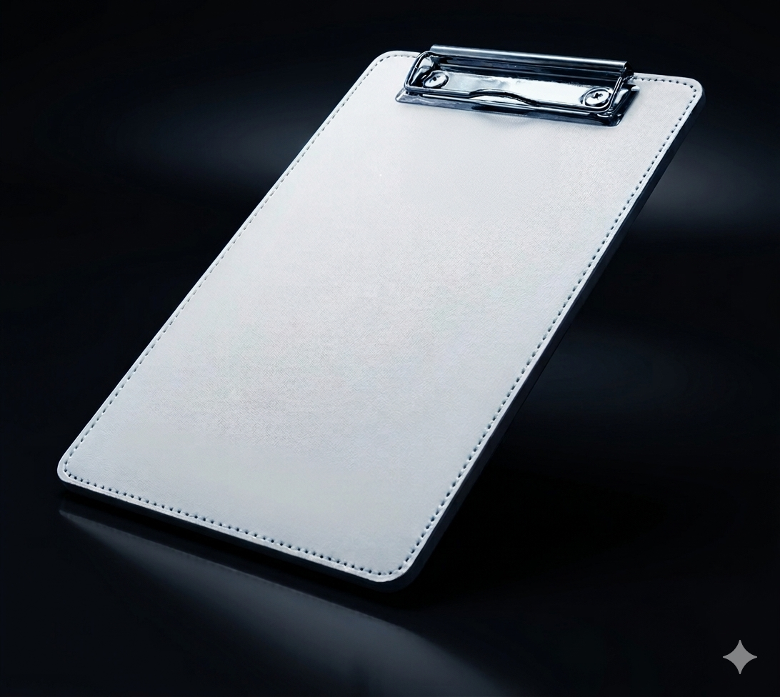 Planche à pince élégante en cuir sublimable, idéale pour les enseignants et professionnels. Pratique pour maintenir les notepads en place lors de la prise de notes. Personnalisez-la avec vos designs uniques grâce à la sublimation pour créer un cadeau professionnel et fonctionnel. Accessoire durable qui facilitera l'organisation quotidienne au bureau ou en salle de classe.